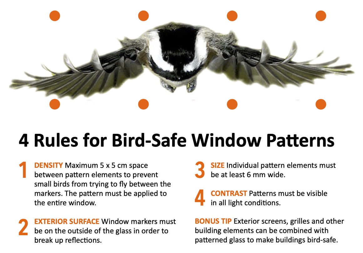 If you apply a few stickers to the window, birds will simply try to fly around them and still hit the glass.
